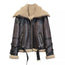 Detachable Double Collar Fur Leather Jacket Womens Distressed Wax Brown Winter Coat.