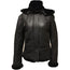 Detachable Hood B3 Bomber Black Leather Jacket with Black Fur, Womens Winter Coat.
