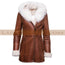Victorian Style Trench Hooded Fur Coat Womens Wax Brown Long Winter Jacket