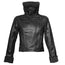 High Neck Collar Folded Cuff Black Fur Winter Leather Jacket Womens